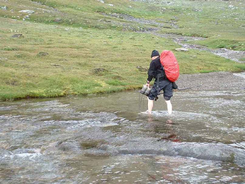 Il faut se déchausser pour traverser les eaux peu profondes.
