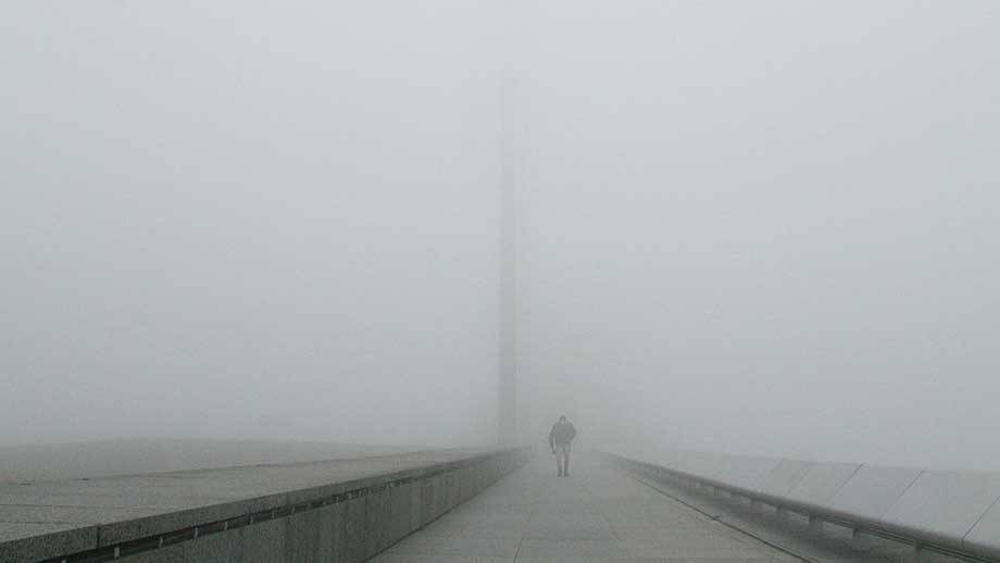 Nous remontons au sommet du Grand Ballon dans l’espoir de profiter du paysage. Espoir déçus. Au fil de la montée, les nuages dans une course folle, poussés par un vent violent, nous enveloppent.